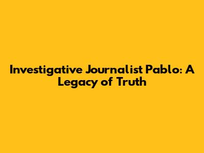 Investigative Journalist Pablo: A Legacy Of Truth